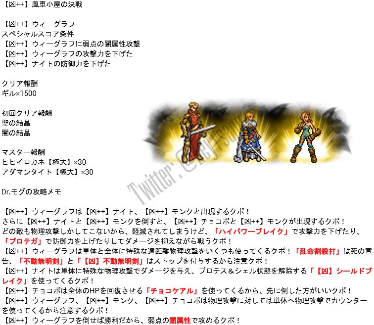 ・最初のナイトとモンクを倒すとチョコボとモンクが出現